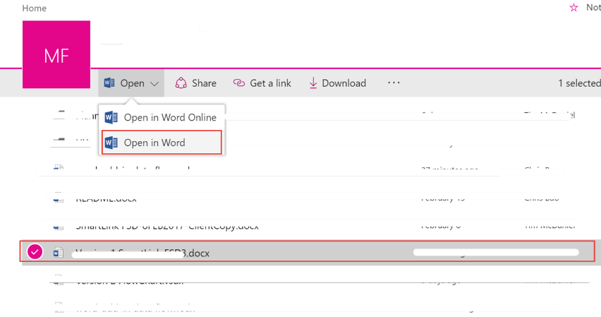 2. Select the power point file and click "Open in PowerPoint" link.